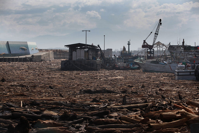 透過一位台東友人的協助,才能進入一些被管制的災區,一踏上受創嚴重的太麻裡,就感到一陣煙硝瀰漫,路面斷裂,房屋許多都被掏空,挖土機正忙著挖開河床泥沙,路上都是軍人和媒體匆忙穿梭其間,這裡曾經是台灣美麗的日出故鄉。為了紀錄被決堤太麻裡溪水衝擊的斷路,我走了一條偏僻的產業道路,來到一處能觀全貌的高地,見到被沖毀的台九線和柔腸寸斷的南迴鐵路,這也中斷了太麻裡以南的所有交通,金峰、達仁、大武因此成了孤島,將近兩萬人受困其中,只能以空投物資的方式來援助居民,也讓屏東與台東這兩個相鄰的縣市,竟需要繞台灣一周才能互通。途中,我見到一台廂型車,旁邊圍了一些人,下車查看才發現是交通部長毛治國,他們一行人正攤開一張地形圖在討論,毛部長不斷透過衛星電話,在接收各地回報的交通狀況,然後一一核對土地流失的情形,雖然風災已過三日,才再收集交通資訊,似乎錯過了第一手資訊掌握,但至少他身旁並沒有帶著媒體,而是和一群專業人士一同勘災與搶救。這和許多巡視災區的大官比起,比較像是解決問題的態度,期待有二十多年事務官經歷的他,能比其他政治派任的官員更瞭解狀況,畢竟許多人命都掌握在決策者的手上。